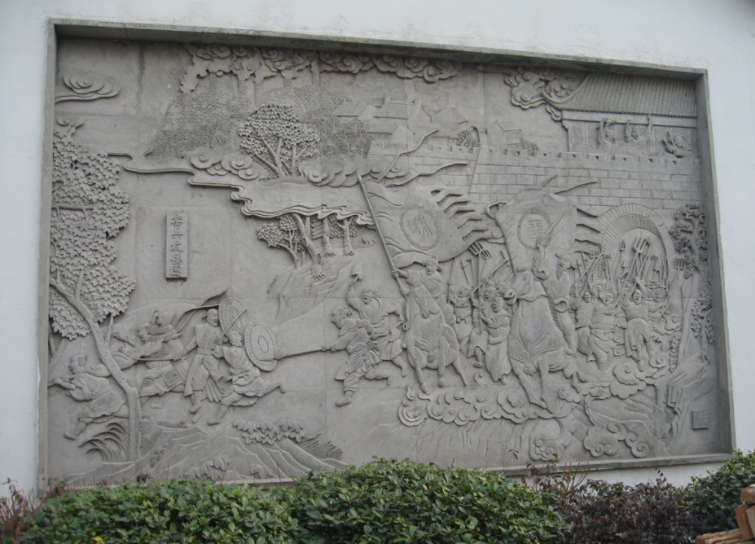 浮雕為圖像造型浮突于石料表面(與沉雕正好相反),是半立體型雕刻品。根據(jù)圖像造型脫石深淺程度的不同,又可分為淺浮雕和高浮雕。淺浮雕是單層次雕像,內(nèi)容比較單一;高浮雕則是多層次造像,內(nèi)容較為繁復(fù)。浮雕的雕刻技藝和表現(xiàn)體裁與圓雕基本相同。古今很多大型紀(jì)念性建筑物和高檔府第、民宅都附有此類裝飾,其主要作品是壁堵、花窗和龍柱(早期)及柱礎(chǔ)等。