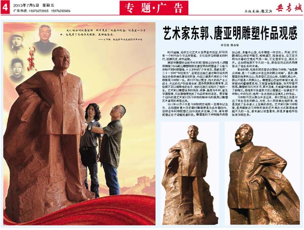 東郭先生作品《風雨胡耀邦》巨像在浙江臺州落成
