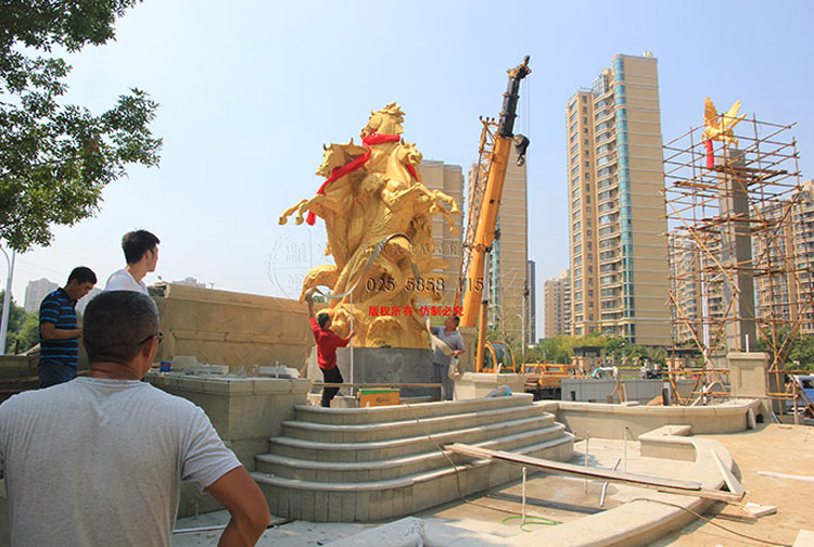 不銹雕塑, 飛馬雕塑,現場安裝中