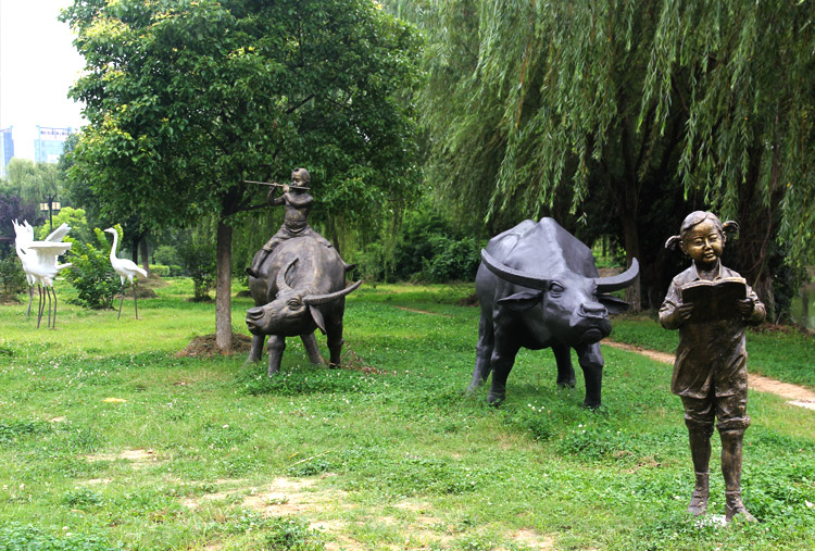 水牛玻璃鋼材質雕塑放牛娃玻璃鋼雕塑田園牧歌現貨