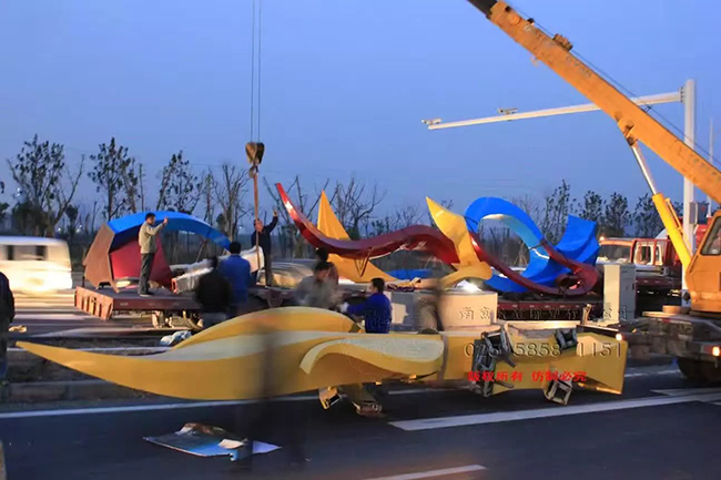 鎮江《鳳舞朝天》不銹鋼鍛造雕塑